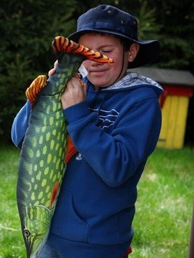Mooi kussen in de vorm van een snoek die we allemaal willen vangen.