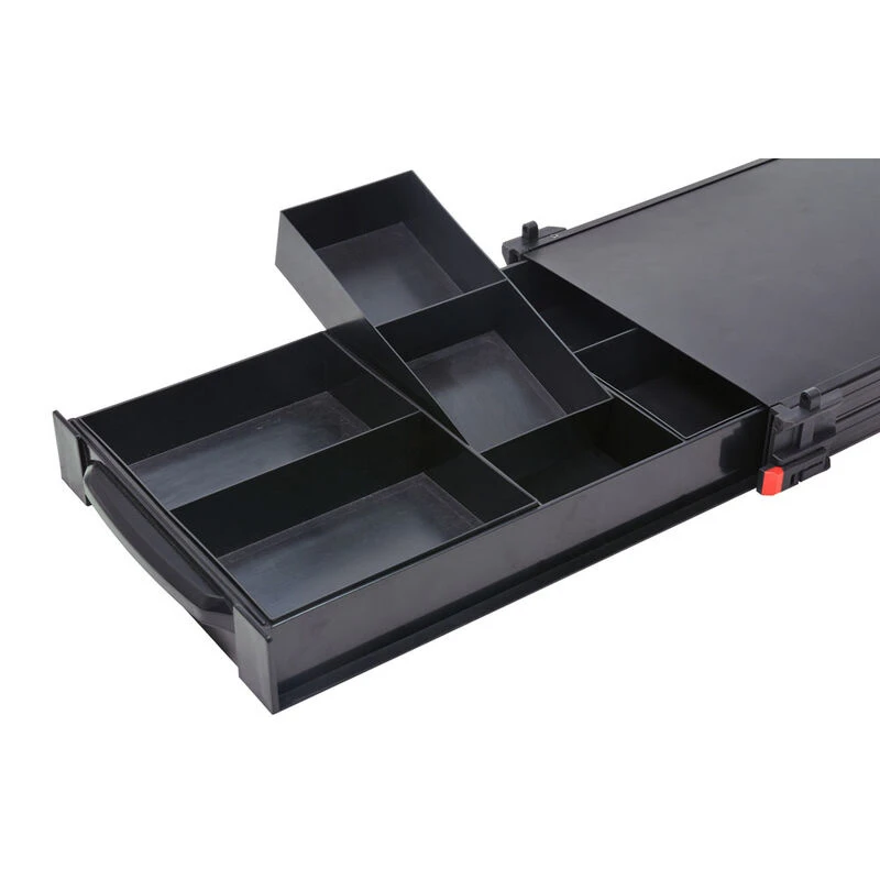 Deze zijlade heeft een magneetsysteem om hem gesloten te houden en zo te voorkomen dat de inhoud tijdens het transport eruit zal vallen.